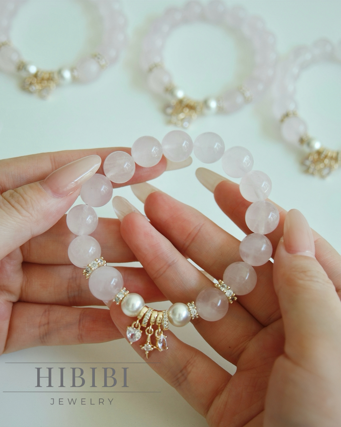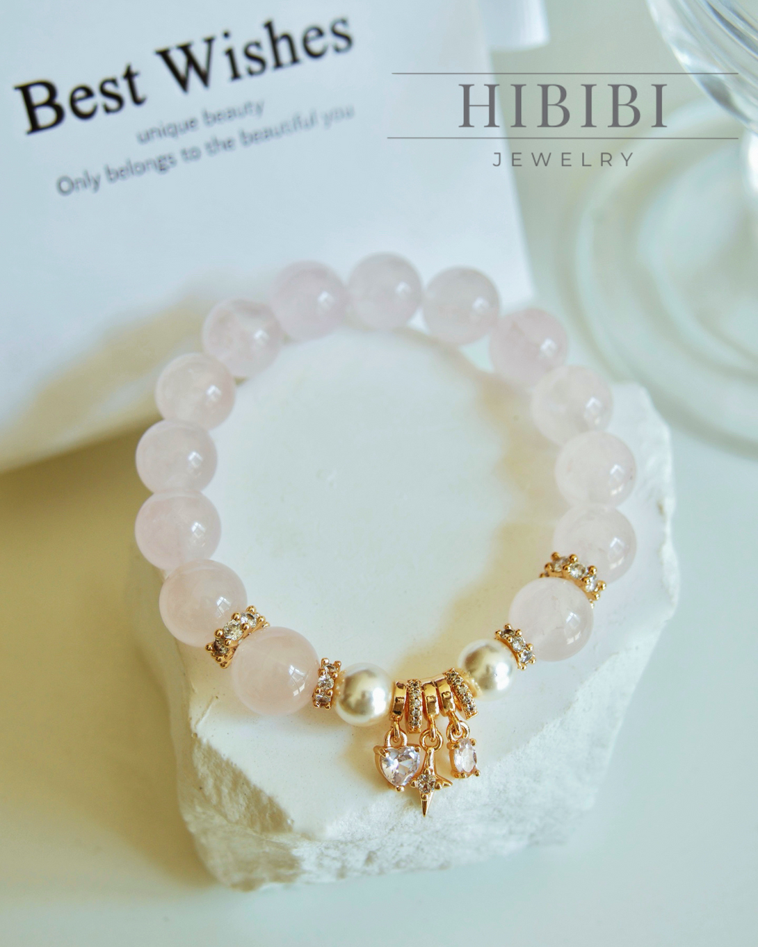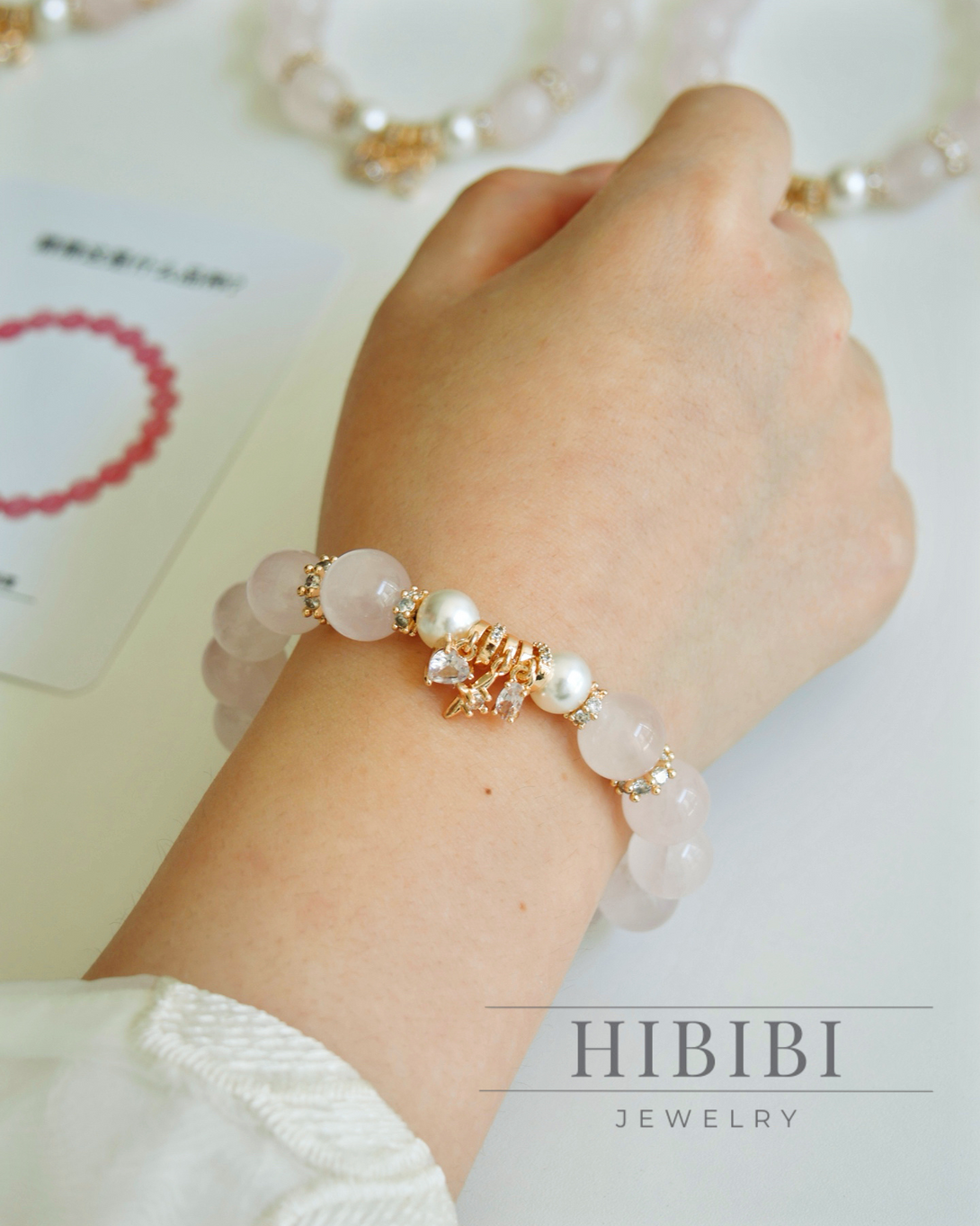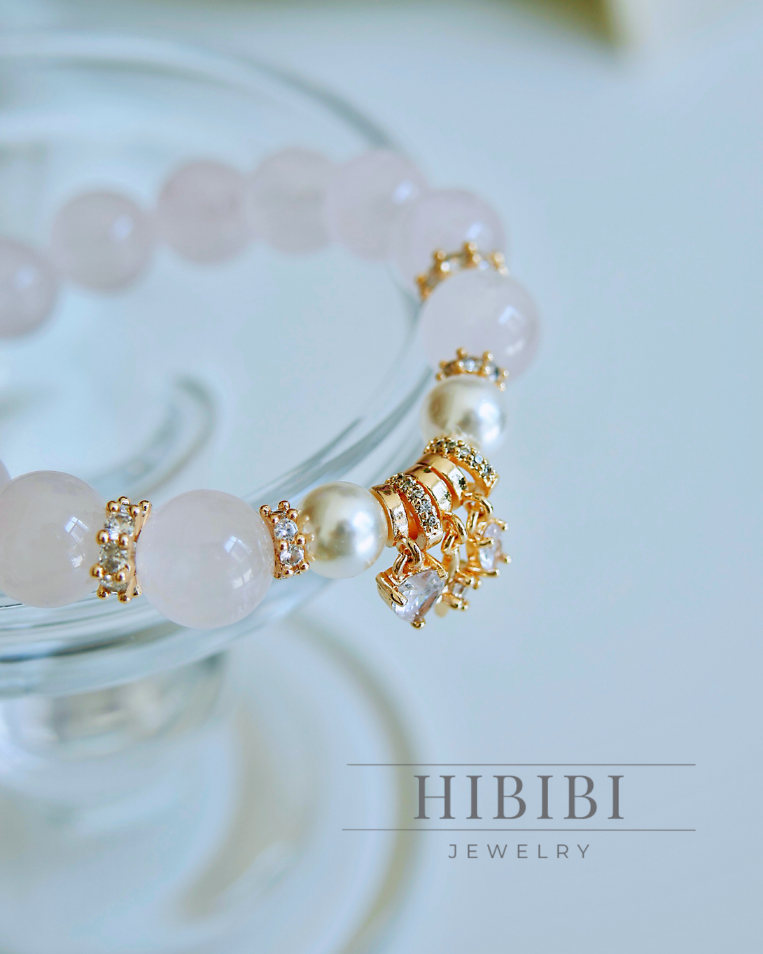 ローズクォーツ×18金メッキ ブレスレット
