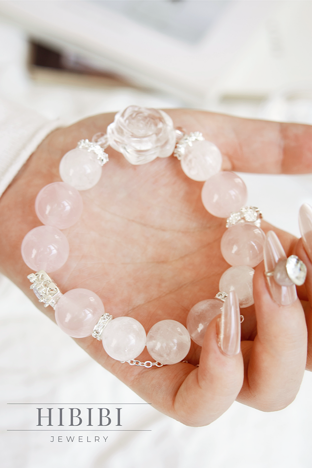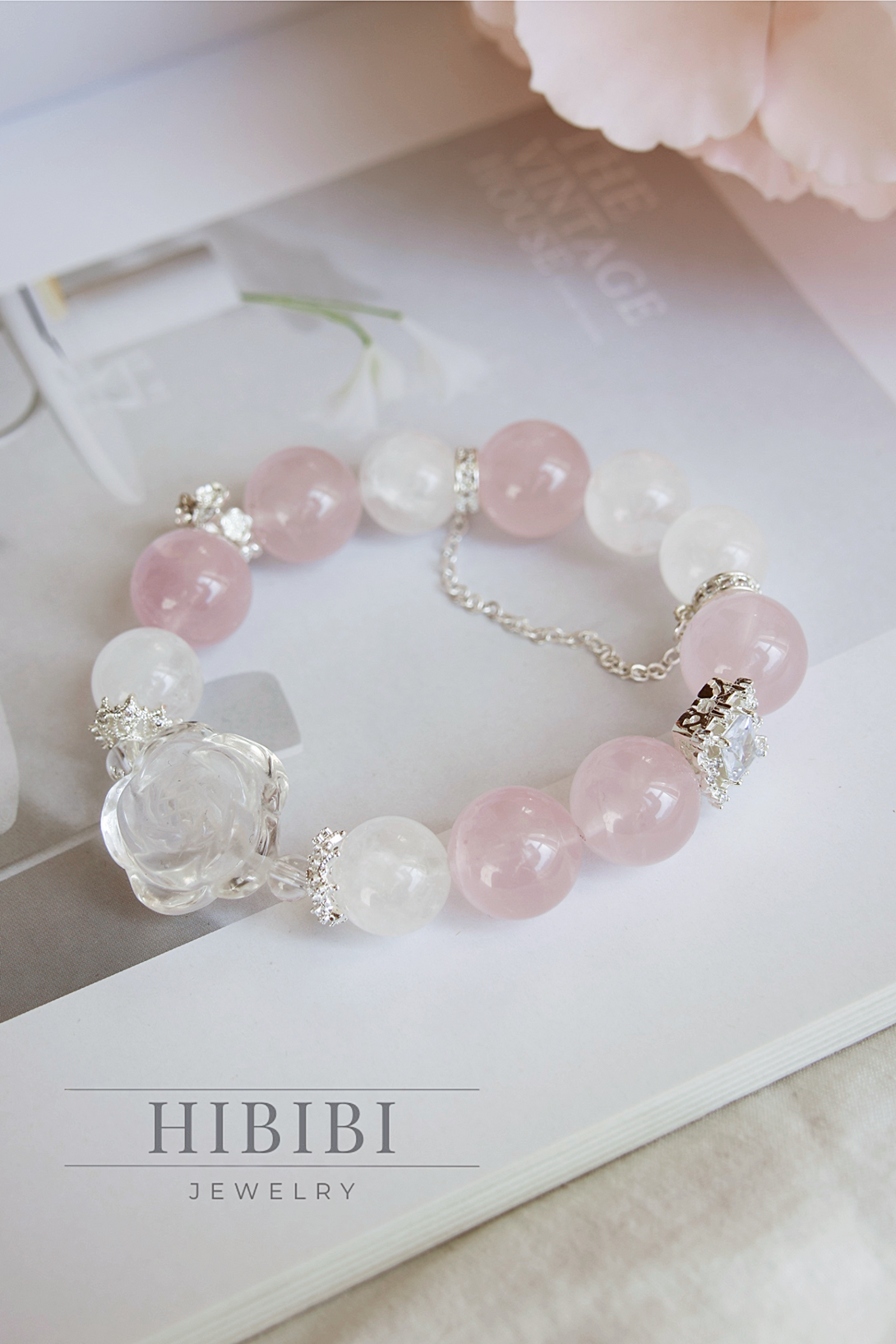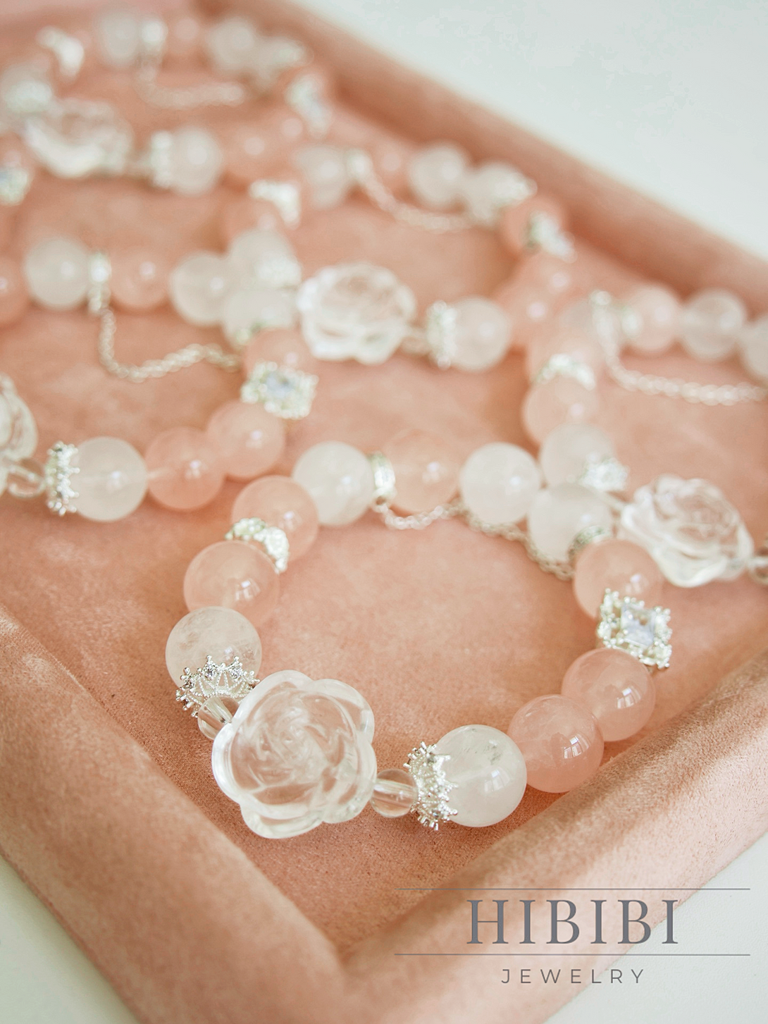 ローズクォーツ、ホワイトゴースト、クリアクォーツ、銅メッキ ホワイトゴールド
