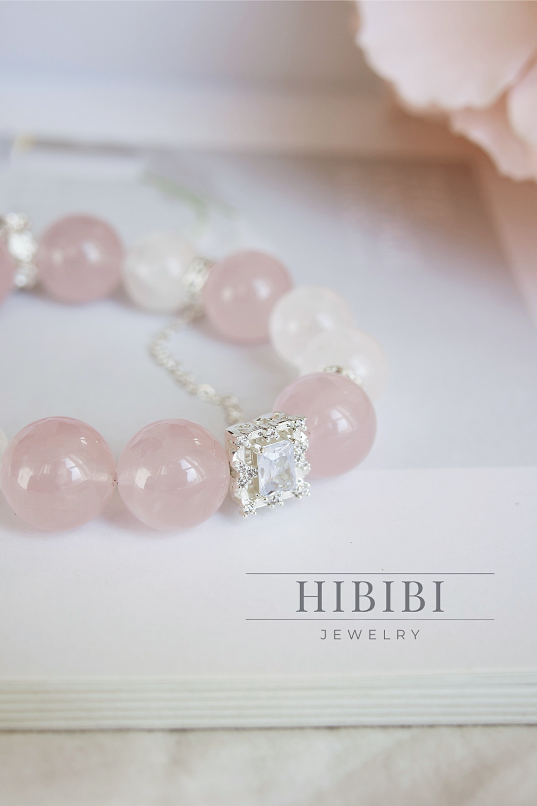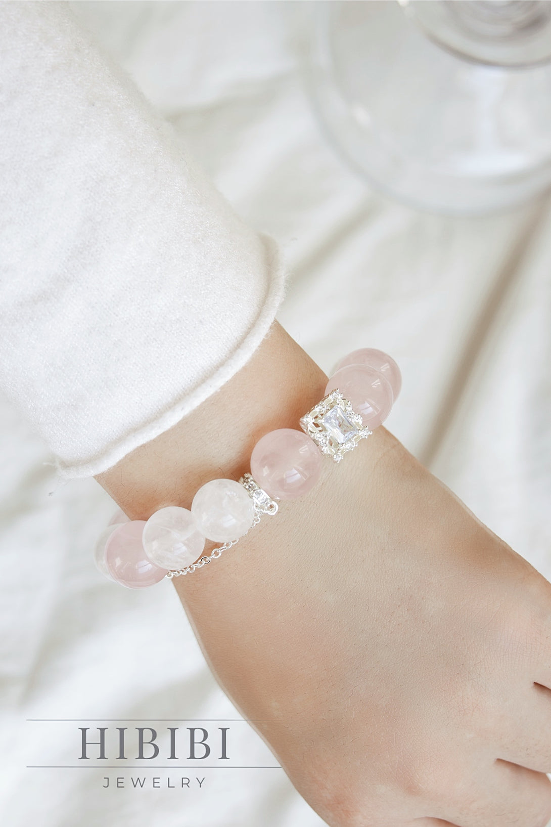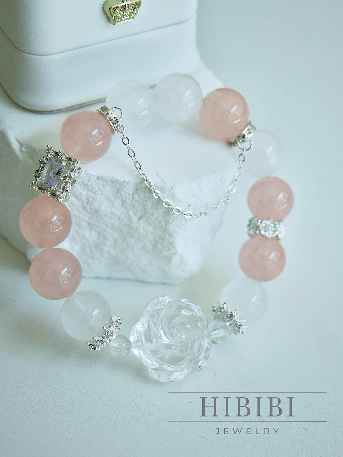 ローズクォーツ、ホワイトゴースト、クリアクォーツ、銅メッキ ホワイトゴールド