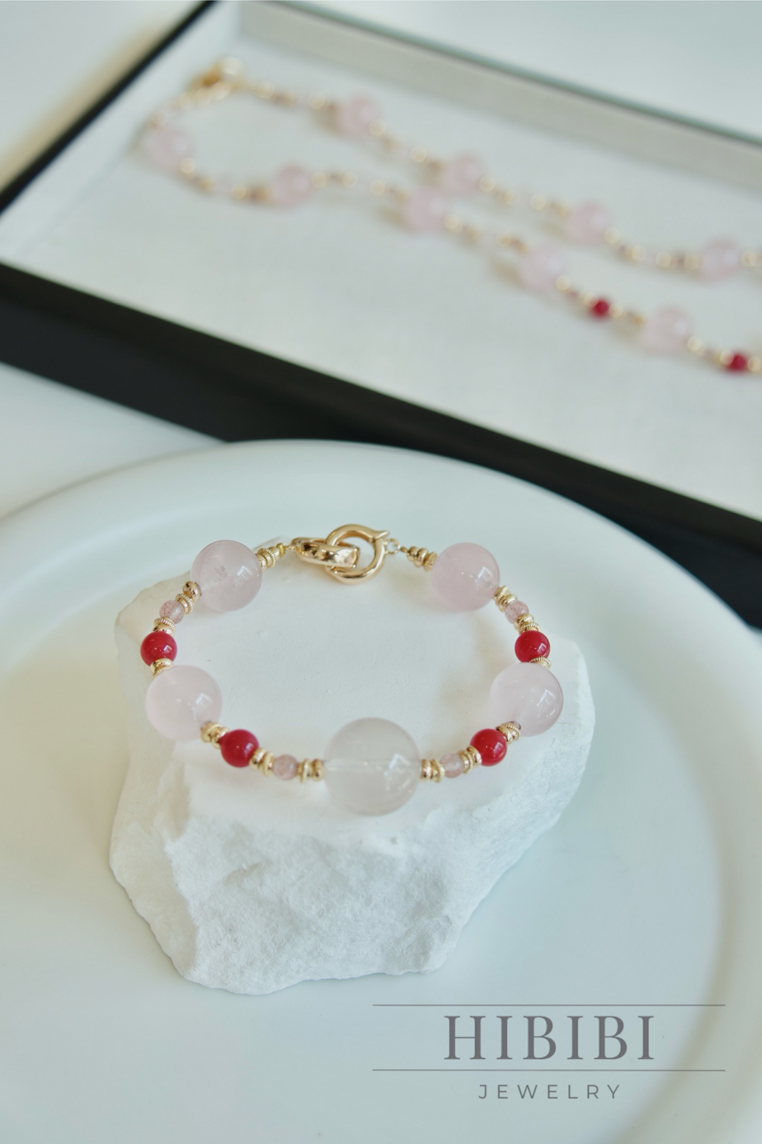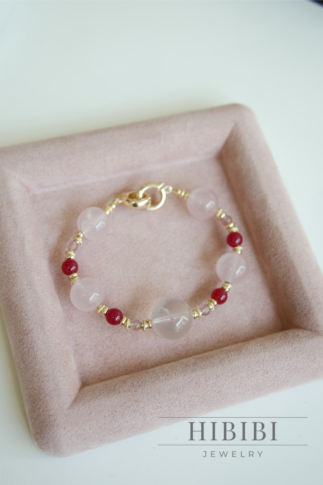 柔らかいピンク × クリアな氷感 × 朱赤色
