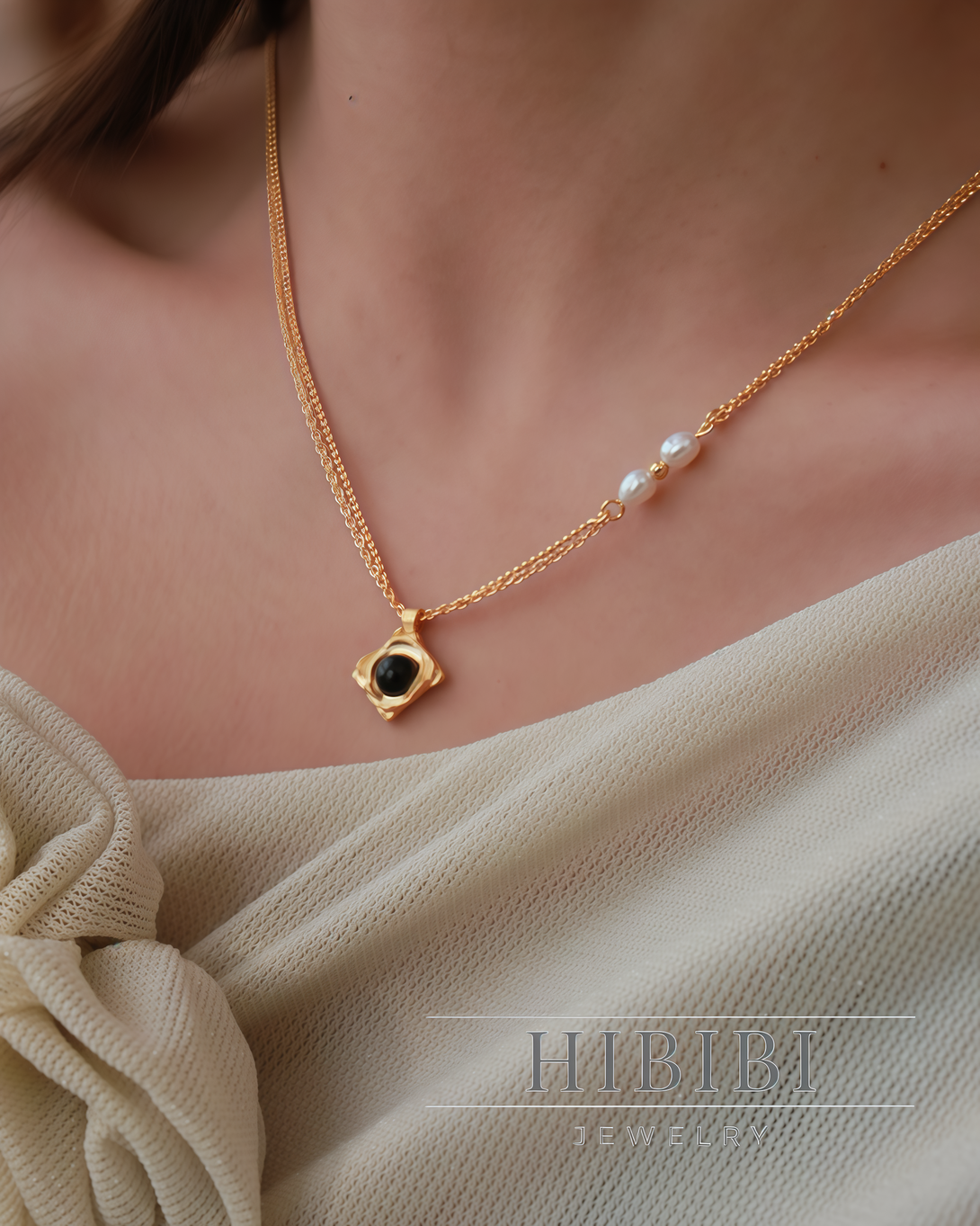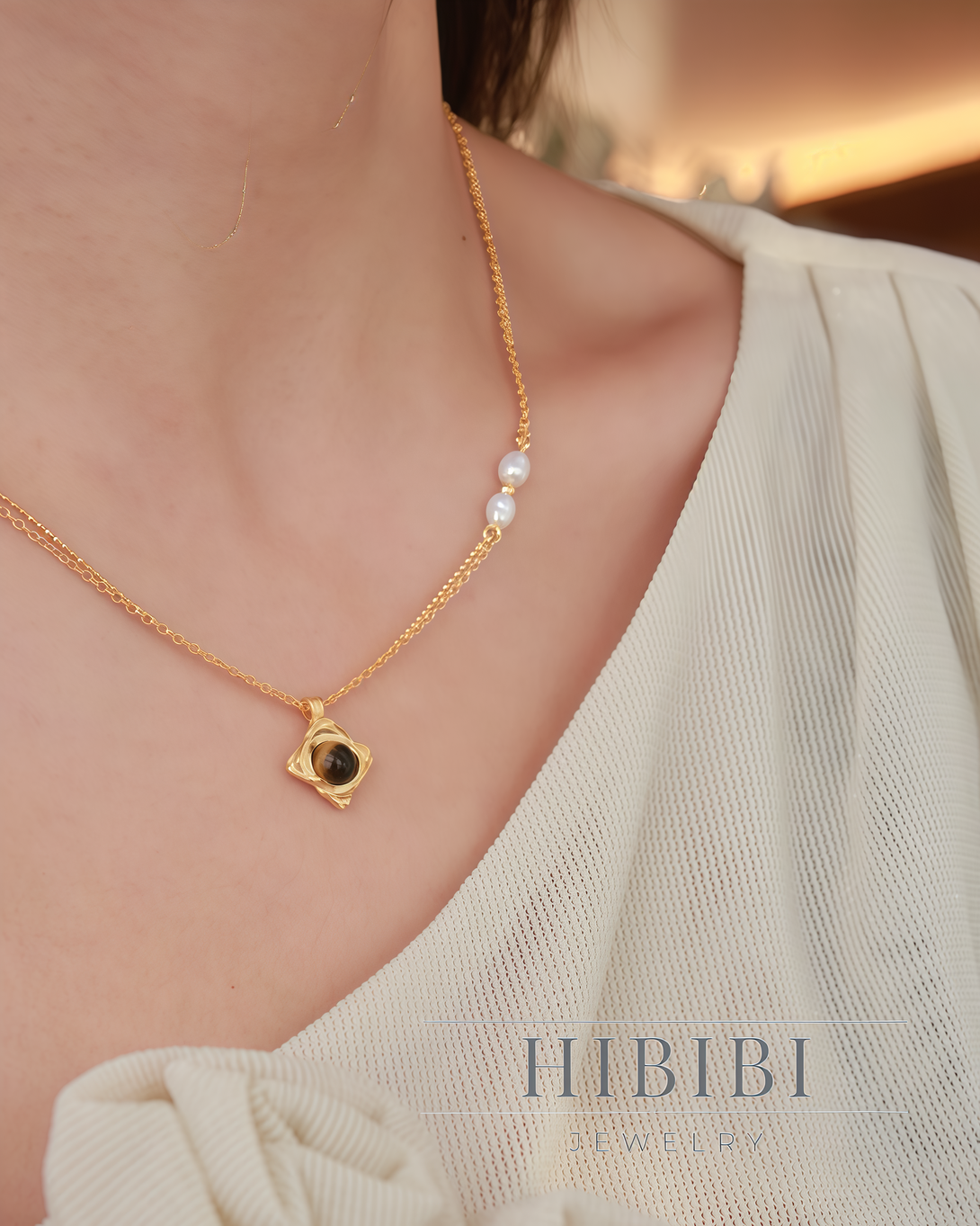 純銀トルコ石真珠 ダブルレイヤーネックレス